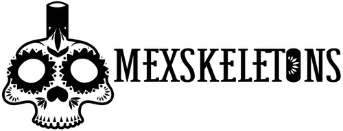 One of a kind hand-painted decanter set, skillfully crafted by artisans in Mexico. The delicate process for the elaborate design of this set takes the artisan many hours to complete. The head of the bottle is a skull made out of clay and it's signed by the artist. The bottle is not only a decoration but it also has the functionality to be filled with any desired liquid transforming this piece of art into a beautiful utility.